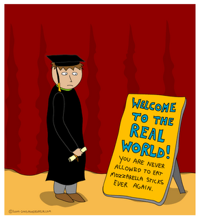 Also, the more pressure that gets put onto finding a career after you graduate, and thus pressuring students to get more education, leads to this quarterlife crisis. The combination of the stress of going post college life and pressure of finding a job is someting very difficult to get over. I also knew a handful of people in college who had a hard time coming to terms with graduating and moving on. It got to the point that they spent more time around juniors rather than fellow seniors in order to pretend that they were not actually graduating. I personally was unsure about my life after graduation, but I was accepting of whatever was going to happen, which seems to be the key to lessening this quarterlife crisis.