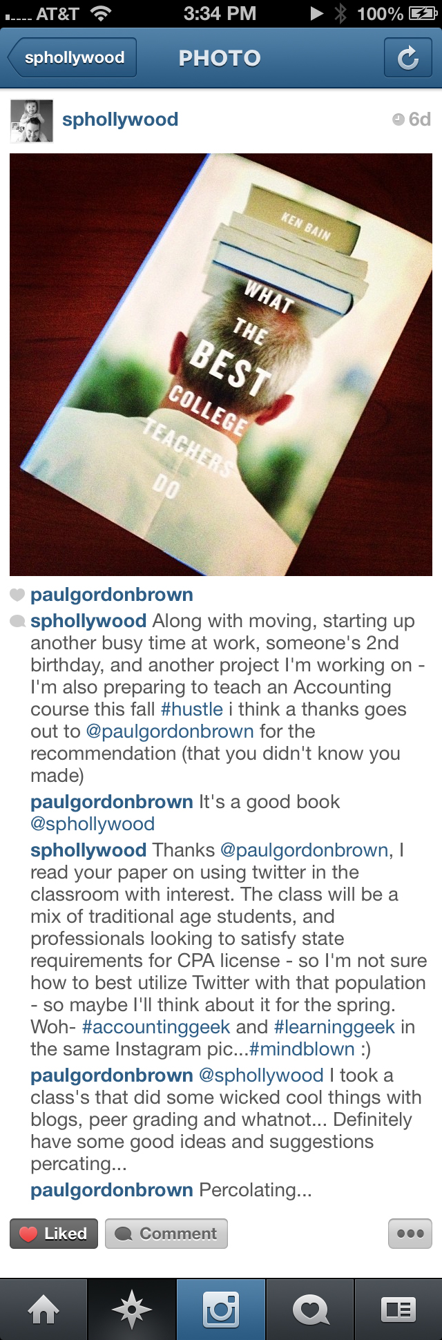 Last week, StudentAffairs.com published a piece I wrote entitled, An Experiment Using Twitter in Teaching a Student Affairs Practicum Course, in their Journal of Technology in Student Affairs. (Please check it out and let me know what you think!) In one of the later paragraphs of the piece, I wrote about my plans for teaching with social media in the future. As many of my students will tell you, I like to try one or two new “teaching experiments” each semester. Usually these experiments involve some kind of technology or social media use. With another semester under my belt, I wanted to write a small follow-up piece on some new lessons learned. I undertook two new experiments this semester: