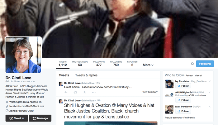 Dr. Cindi Love is the new Executive Director of ACPA-College Student Educators International. Cindi brings some excellent perspectives on social justice in higher education and what we can do to affect change. If you want to stay current on happenings in Washington impacting higher education, or just need a dose of inspiration, Cindi Love is an excellent person to follow. She is also very accessible… real… and inspiring.