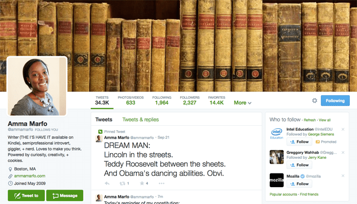 Amma has an amazing ability to perfectly summarize anything she hears into 140 characters or less. If you want to follow the best live-tweeter in student affairs, Amma is it. Amma also maintains a blog, and frequently writes and speaks about introversion and about how humor can teach you about your work.