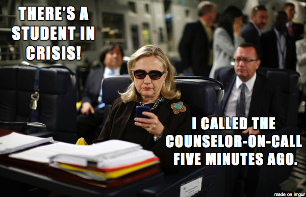 With that in mind, here are a few student affairs text exchanges with Hillary…