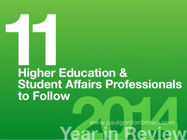 Semi-weekly, I try to highlight higher education and student affairs professional to follow on Twitter and online.  The following is a review of all those highlighted in 2014.  Follow along in the new year with new spotlights.