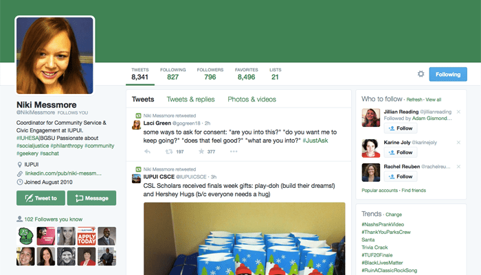 Niki always puts out great content and is quick to provide an insightful thought or tweet. She has a very successful blog, Dances With Dissonance, which covers a number of topics both within higher education and outside of it, including social justice, feminism, life transitions, and professional issues. Consider giving her a follow!