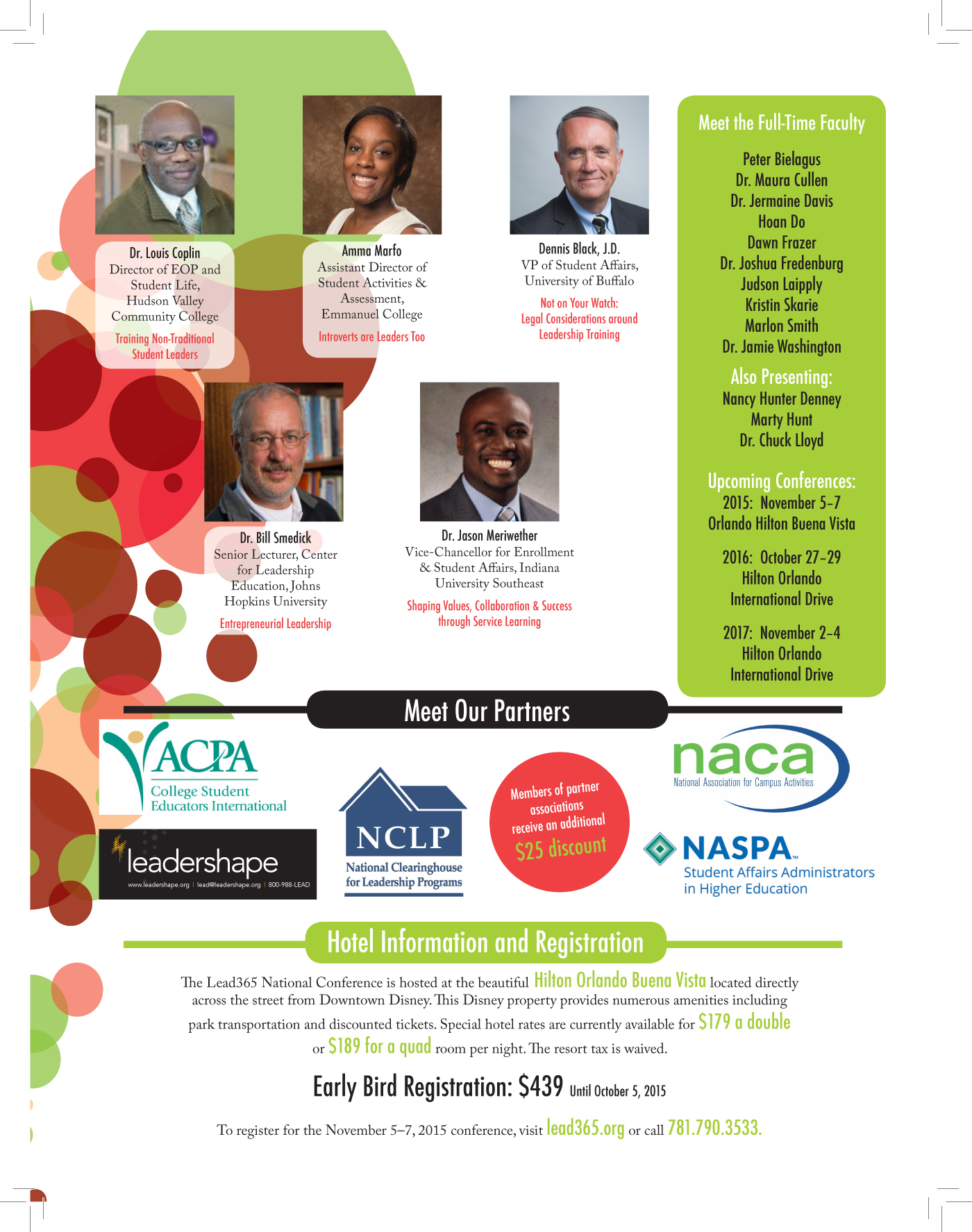 As Lead365 describes itself: “Lead365 is the sponsoring organization of the Lead365 National Conference and home of a growing “virtual warehouse” of resources focusing on collegiate leadership development. Designed for undergraduates, graduate students and professionals, Lead365 is committed to preparing collegiate leaders to effectively serve, producing individuals well-equipped for the work force, and inspiring service to humanity. Our top priority is the hosting of the annual Lead365 National Conference. This three-day conference is unlike any other.”