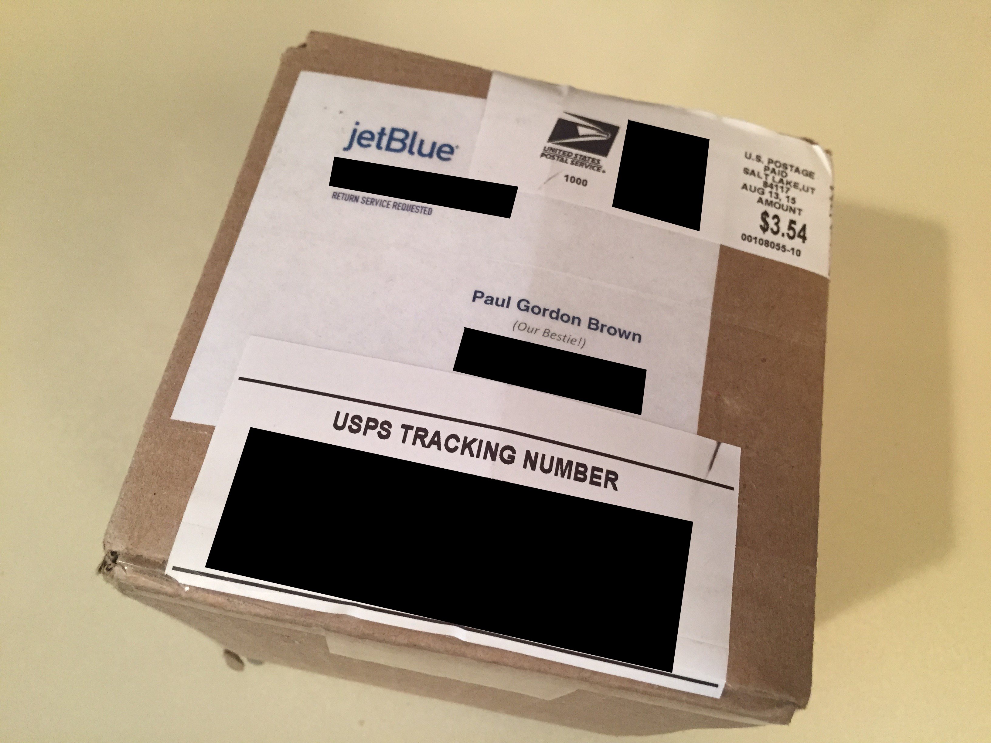 Uh oh… the JetBlue social media team is up to shenanigans again! For the next two days I had paranoia that a pizza delivery person could jump out from behind a building and accost me with showers of pizza boxes at any time (not that I would complain mind you). Well a few days passed… and this arrived at my door.