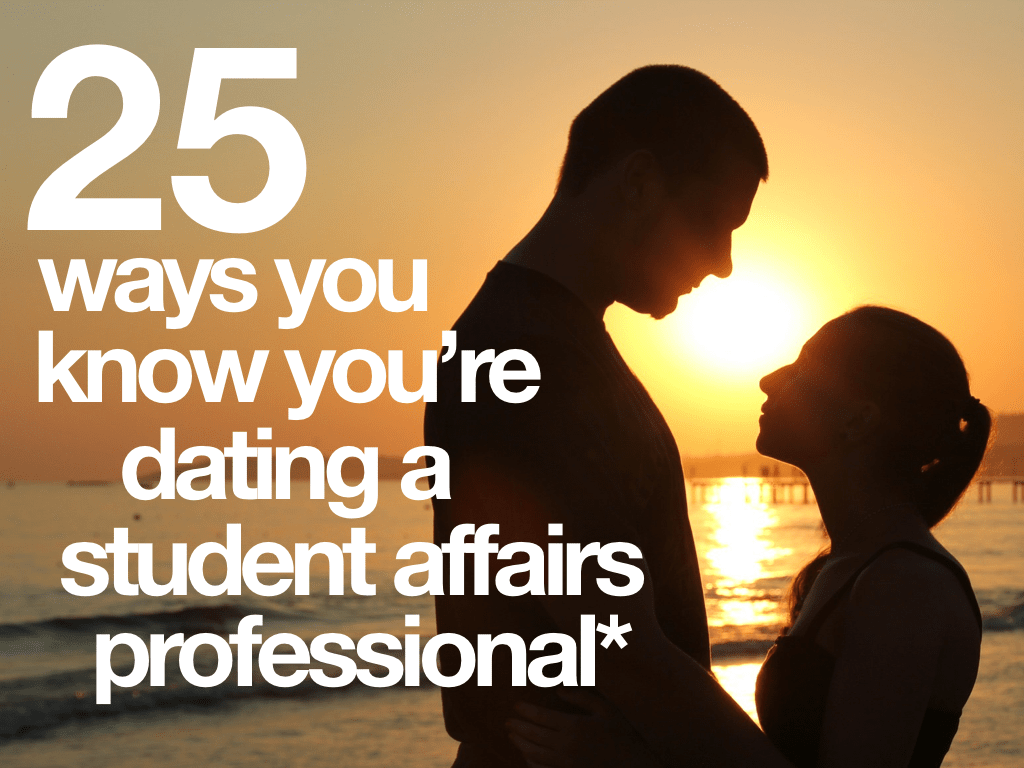Have you ever been on a date and realized you’ve done one of the following? Or perhaps you’ve been on a date with someone in Student Affairs and always thought something seemed off about them. Well here’s a list of the top ways you know you’re on a date with someone in SA (with special notations about #ResLife only issues)