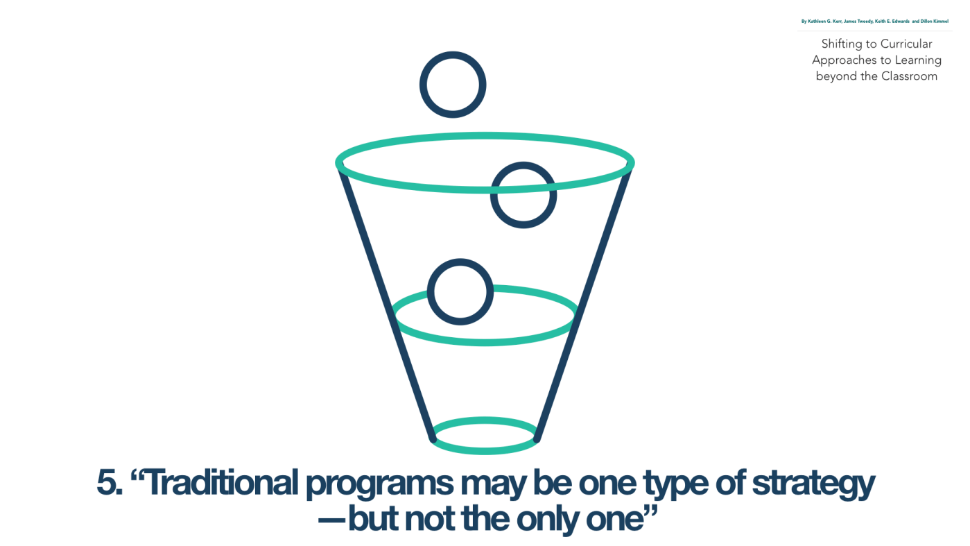 Reference: Kerr, K. G., Tweedy, J., Edwards, K. E., & Kimmel, D. (2017, March-April). Shifting to curricular approaches to learning beyond the classroom. About Campus, 22(1), 22-31. doi:10.1002/abc.21279