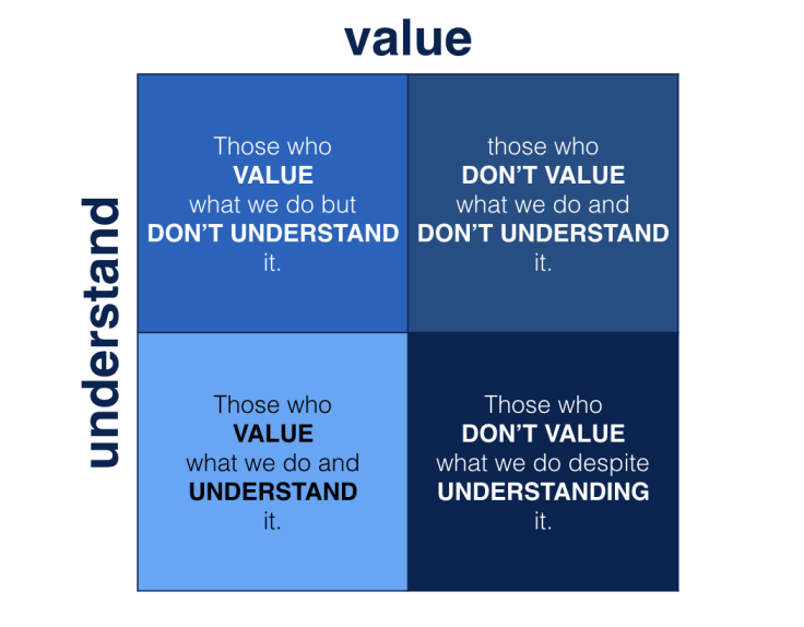 For your internal partners and stakeholders, it is critical that you include them in the journey towards a curriculum. Change can sometimes be intimidating for individuals and being transparent about the process and what the process entails can foster inclusion. Connecting the curriculum to the mission and strategic plans of the institution can help individuals connect the curriculum to broader themes in their own work. Finally, being clear in articulating the change, its benefits, and how this can transform your work (collectively and individually) can ensure that staff understand this is not just an incremental change, but a complete change in ways of working.