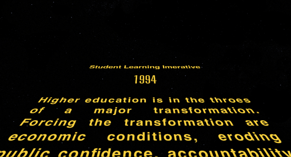 The folks behind Star Wars released a fun little tool that allows you to turn any text into the classic "opening scroll" found at the beginning of the movies. Playing around with some student affairs documents, I found the opening paragraph to the Student Learning Imperative to fit surprisingly well... it feels so dramatic! Click the... Continue Reading →