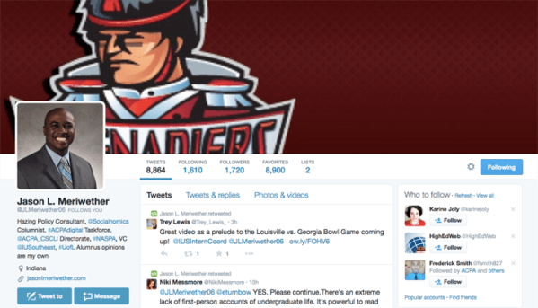 Forget transferring a gavel, this is the 21st century. Now we transfer Twitter accounts. The @ACPAprez account transfers from President to President every year during the Annual Business Meeting of ACPA-College Student Educators International. ACPA, one of the comprehensive professional associations in student affairs and higher education is an excellent account to follow, but don't... Continue Reading →