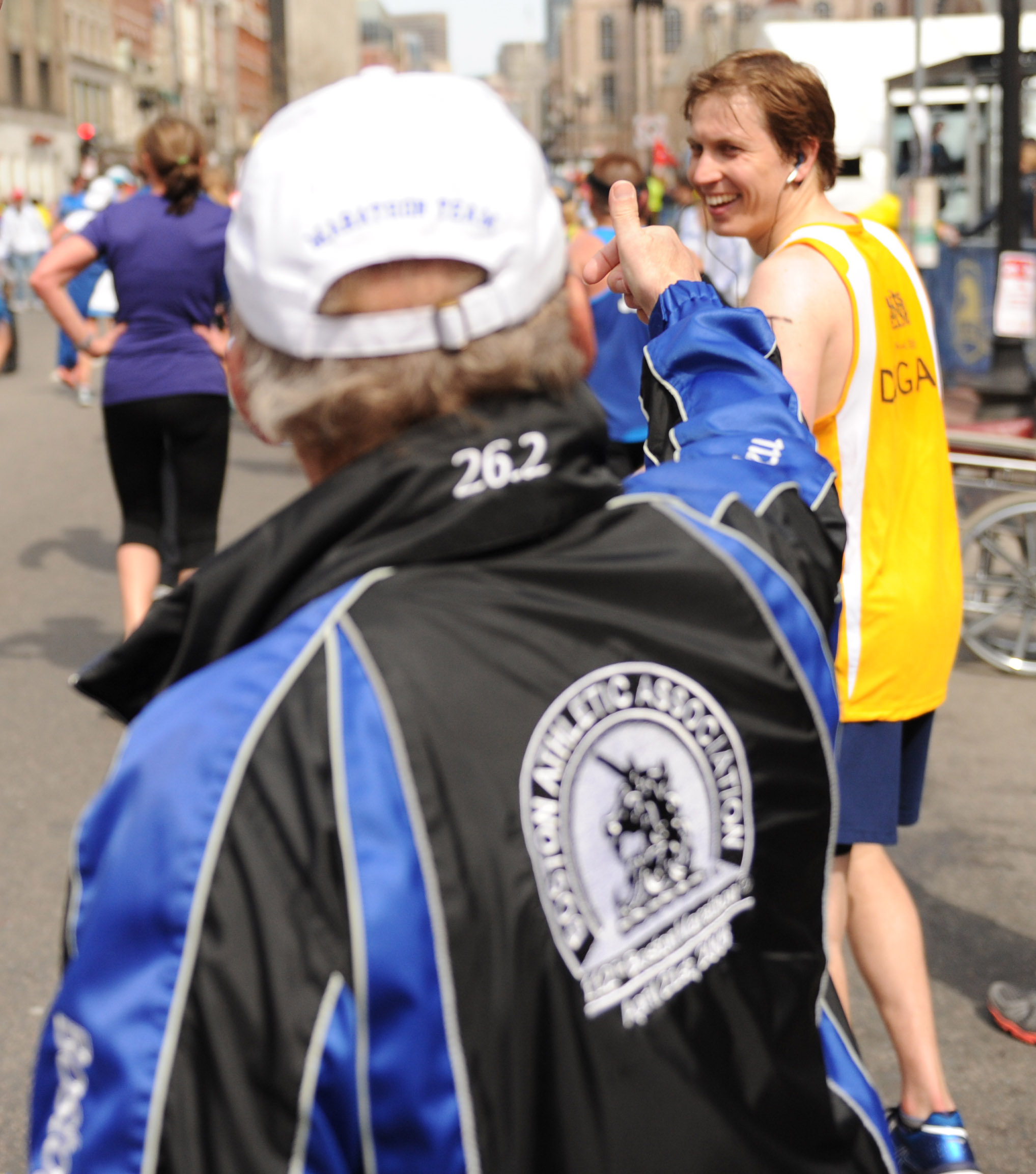 As I wondered how best to support my own students in light of the marathon bombing, I reflected on the example that Coach Don set. Coach Don and the Tufts Marathon Team represent the unwavering, unceasing, uninhibited love and support that great people share and that is most needed, most urgent, and most prevalent at a time of vulnerability and suffering. Coach Don is not just an administrator at Tufts University, not simply a swimming and marathon coach. He is a rock and an institution that gives his entire self to his student-athletes. He is a man of about five feet two inches, but his devotion and compassion, the strength he gives to his students, and the unity he gave to our team, stands taller than any attack or threat.