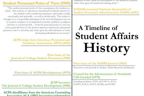 Last Fall, ACPA released an EXCELLENT website that walks through a history of student affairs and college student educator practice as told through the seminal publications of the Association. If you haven't had a chance to take a look, I encourage you to scroll through them. In many cases you can click to see their full text.... Continue Reading →