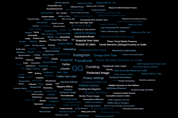 My Dissertation On College Students and Social Media In One 195-Code Word Cloud